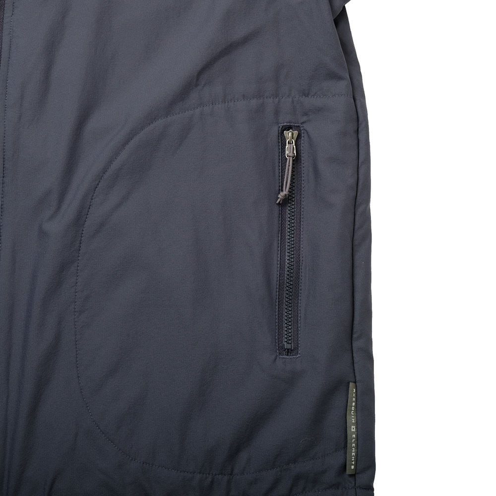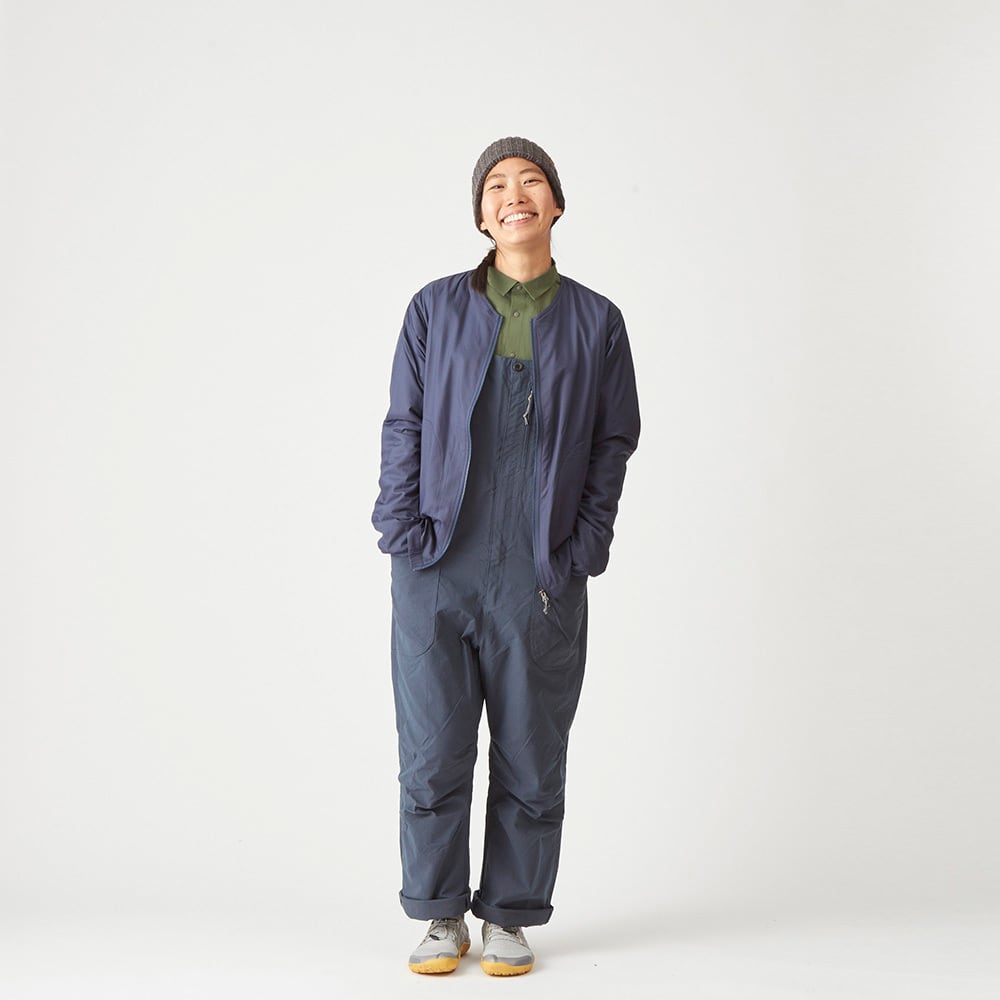 寒い時期の峠道では適度な保温性を提供しつつも汗を放出するアクティブインサレーションとして、暖かい時期の古道歩きでは停滞時の汗冷えを防止するインサレーションとして有効で、バックパックの隙間に滑り込ませておけば一年中何かと使えます。また、オーバーレイヤーすることを考慮して首まわりをすっきりラウンドネックで仕上げています。