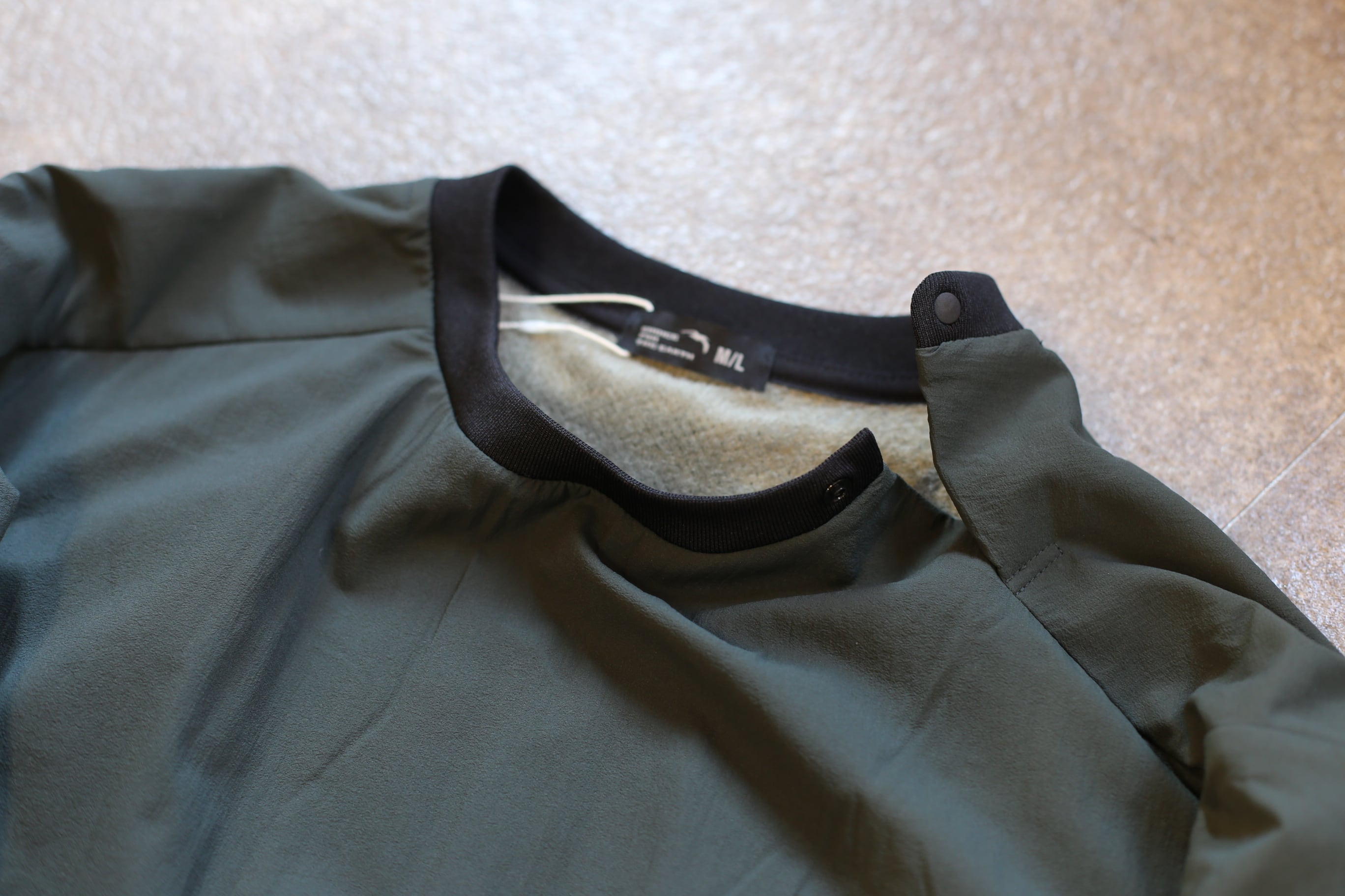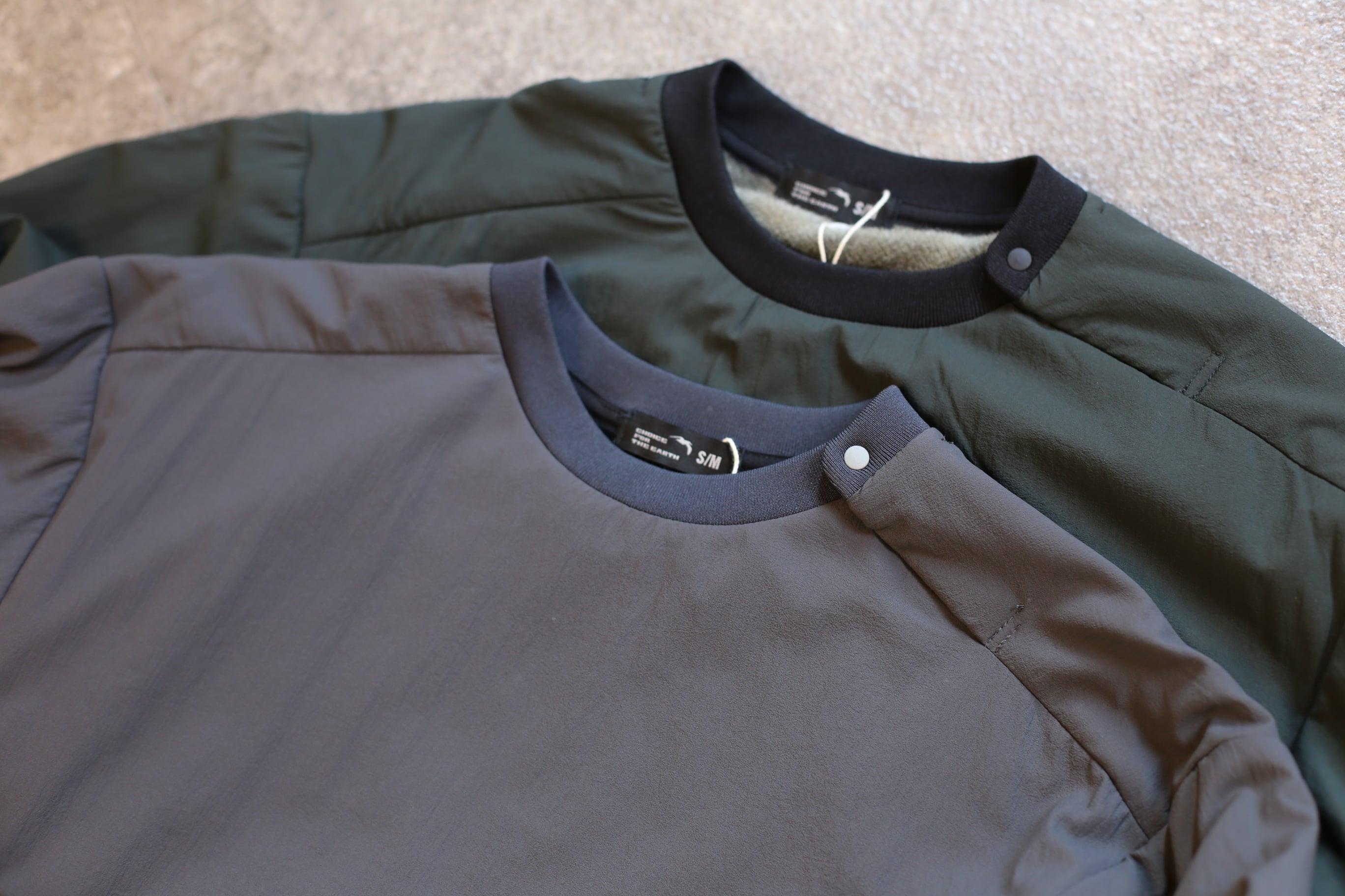 OCTAをライニング×ストレッチナイロンのクルーネックタイプ。