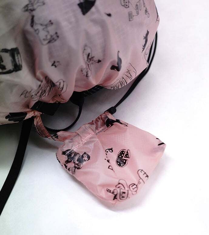 従来のザックカバーは大きなロゴや原色の色使い等、お世辞にもスタイリッシュとは言いがたい物が多かったので、ありそうでなかったこんな可愛らしいザックカバーで雨の日も楽しくハイキングしましょう!