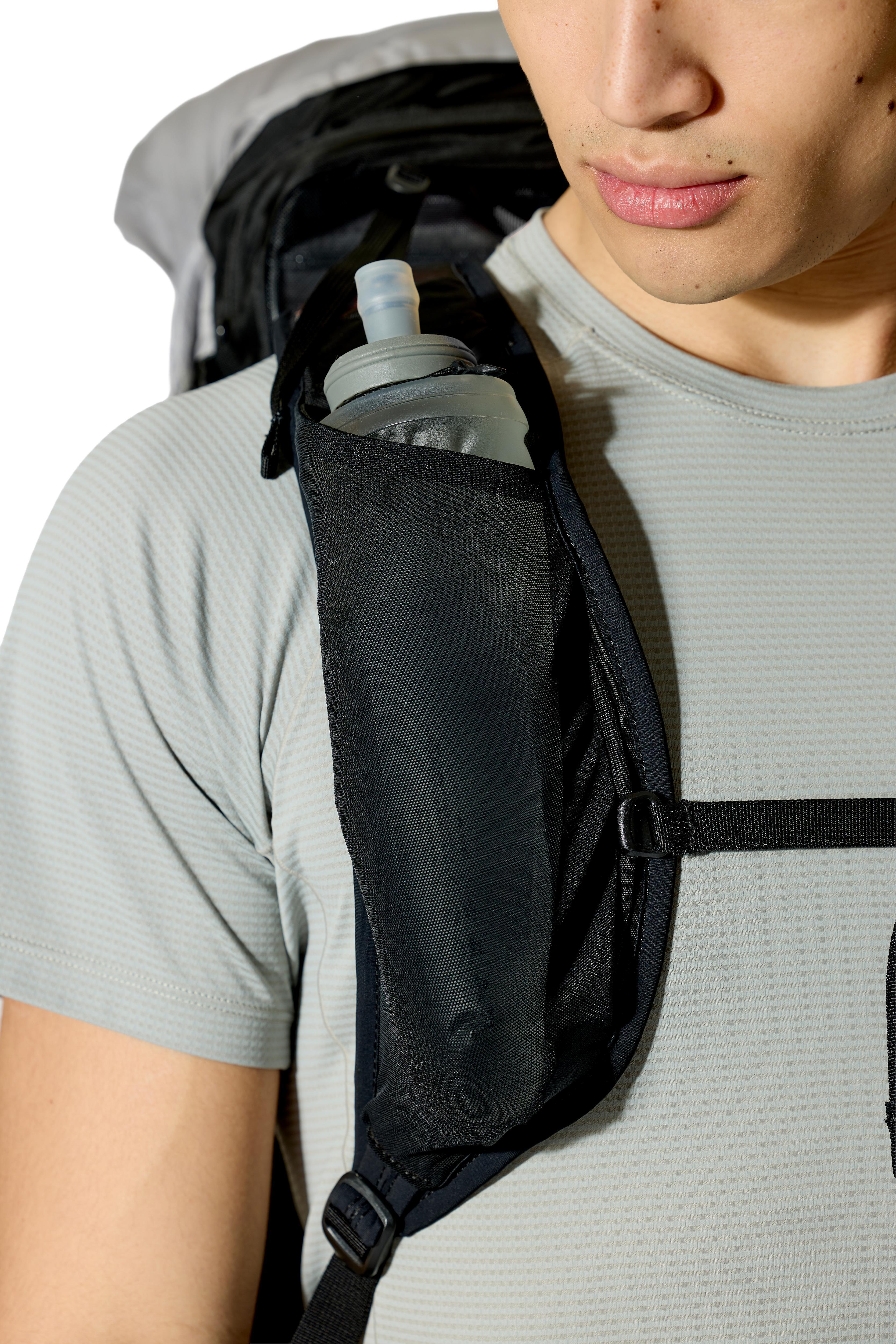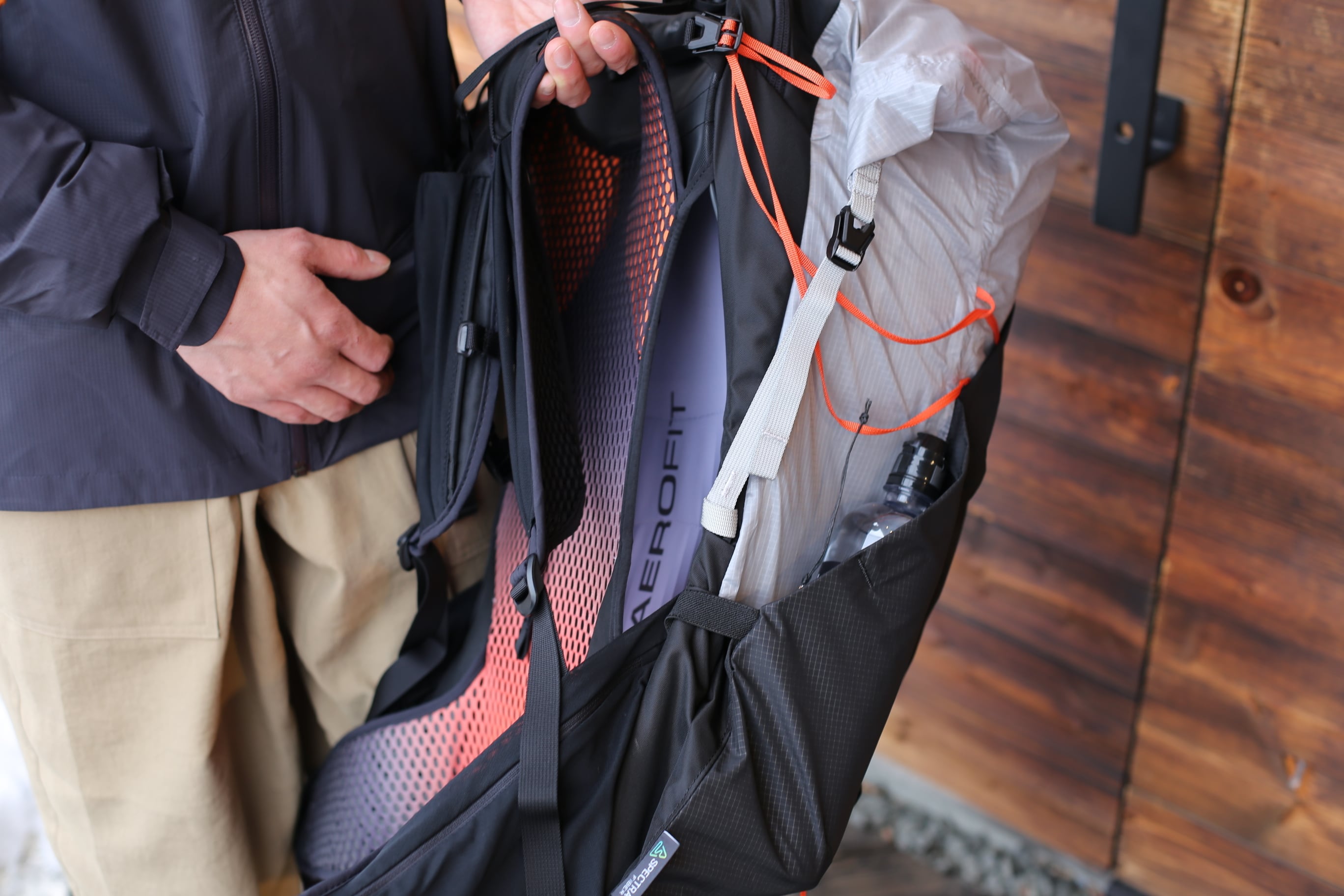 ・両サイドのスタッシュポケットには1Lのウォーターボトルを収納可能