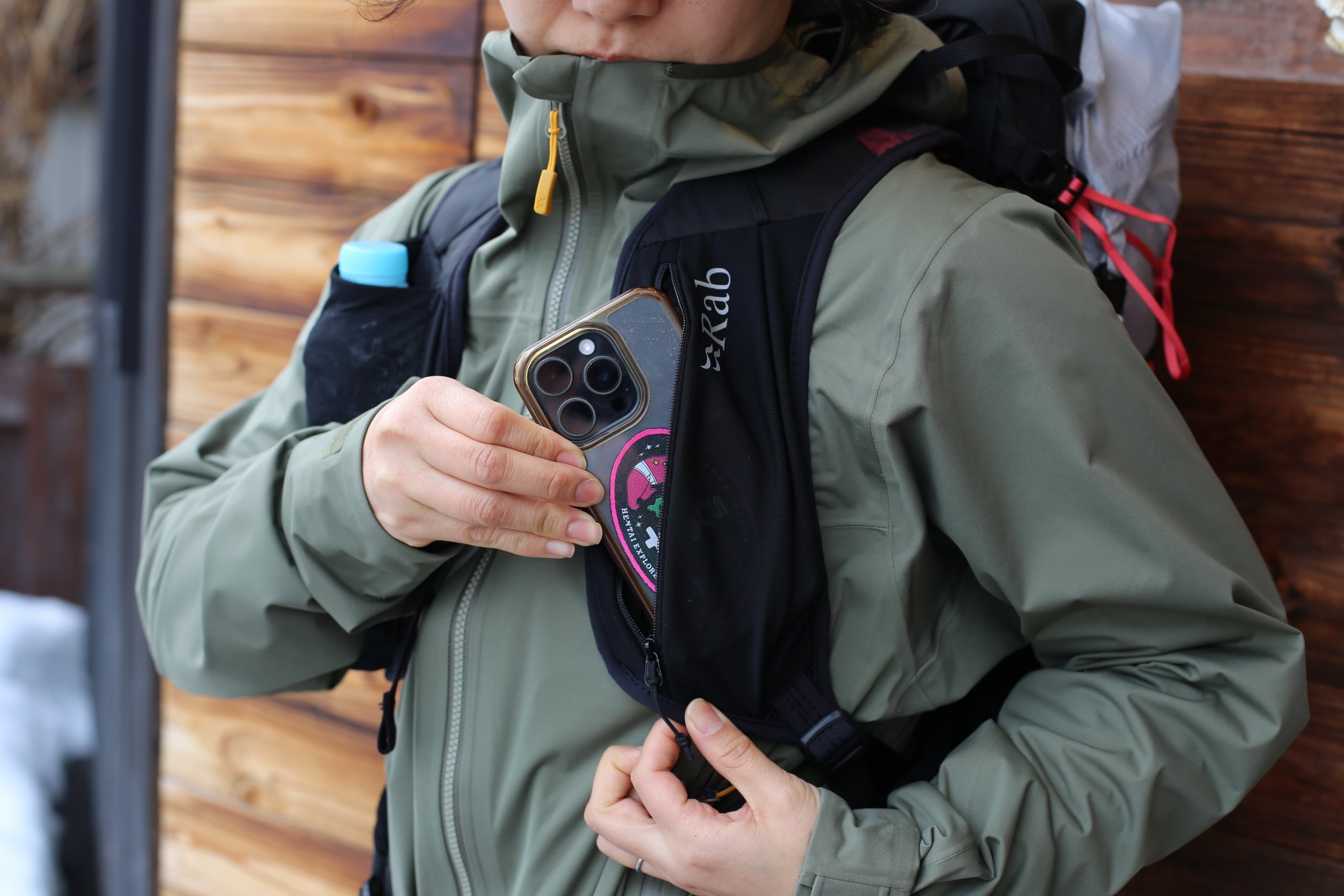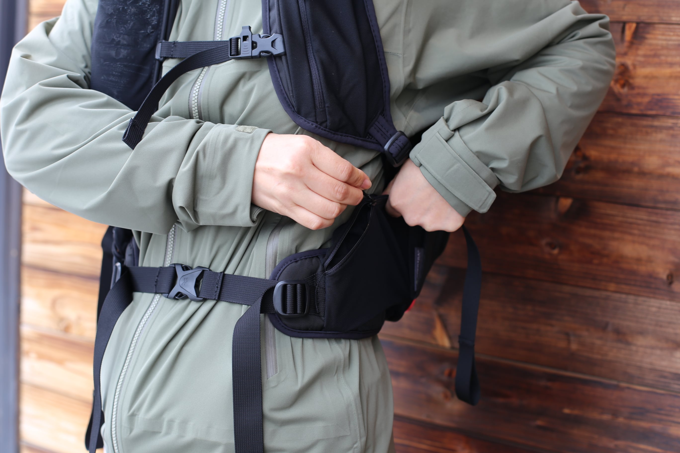 ・チェストストラップにソフトフラスクや小物を収納できるポケット付き