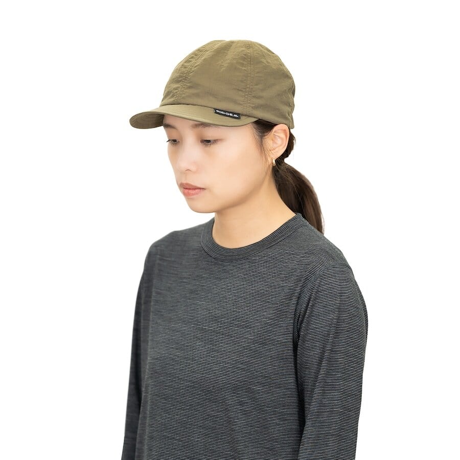 ヒサシは、日差しをしっかりと遮りつつも風の影響を受けにくい最適な長さに設計しました。強風の中でもばたつきにくく、かといって視界を妨げない絶妙なバランスです。生地には軽量かつ耐久性に優れた高密度ナイロンを採用しました。多少の雨や擦れにも耐え得るタフさがあります。汗どめ部分には吸湿速乾性に優れたポリエステルメッシュを配し、長時間の使用でもムレやベタつきを防ぎます。