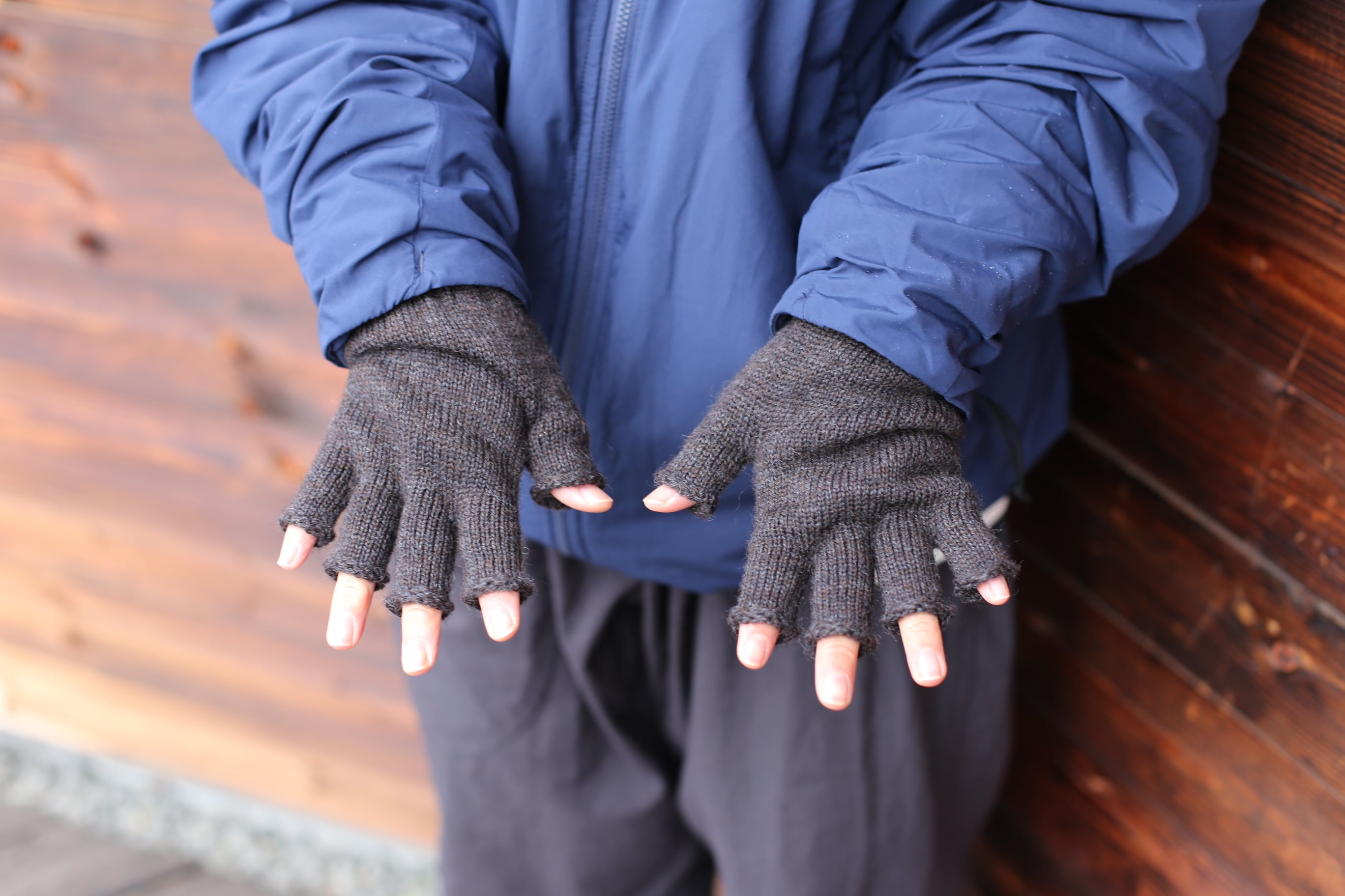 親指を立体的に編み、他の指先も長めにすることで、外さずとも指先をストレスなく使うことができます。